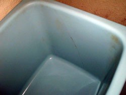 ◎据置きポリ浴槽。側面約50cmの亀裂。