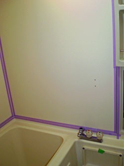 ◎浴室用パネル(セキスイコンフォートパネル)を張り込む。