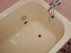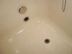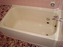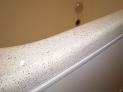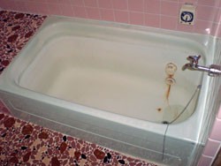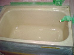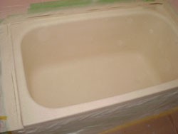 ◎強固で、凹凸の無いプラスチックの浴槽を作製したあと、 アイボリーのORZ−2番樹脂を吹付。 石目ORZ−2樹脂を吹付。