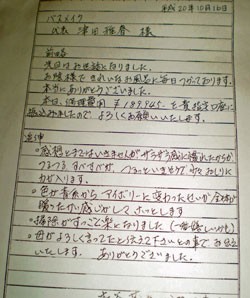 ◎施主様の奥様から、「ありがとうファックス」 を頂きました。