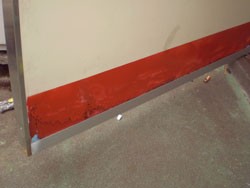 ◎アルミフレームで見切りをつけ、防水パネルを張り込む。防水処理。