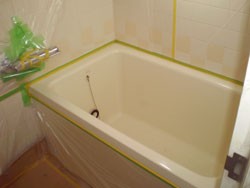 ◎浴槽全体をORZー2番樹脂(アイボリー)を塗布。
