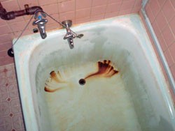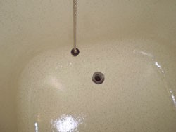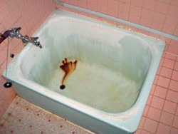 浴槽に穴があき、お湯が漏れ、まったく貯まらない状態。