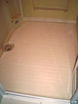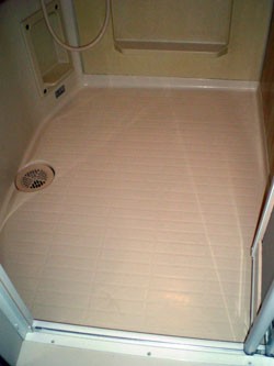 ◎ユニットバス洗い場床、全体をORZ−2樹脂(アイボリー)を塗布。