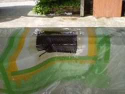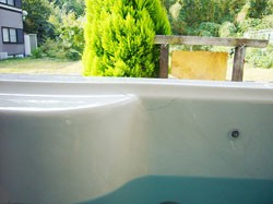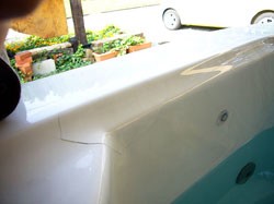 展示ジャグジープールの亀裂メンテナンス。