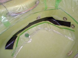◎亀裂をカーボン繊維にて補強。