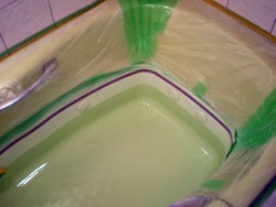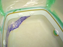 ◎約90センチ亀裂修理部および浴槽底のみの樹脂積層メンテ。