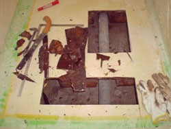 ハーフユニット洗い場床が、経年変化でブカブカに成り、