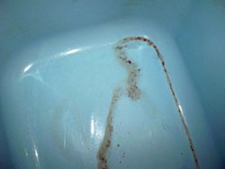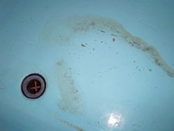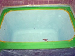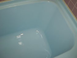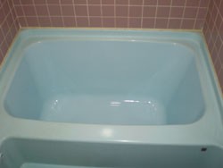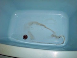 以前の浴槽底亀裂修理、及び塗装修理が不適切で、底の塗装がはがれ、修理したはずの亀裂部分が