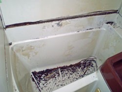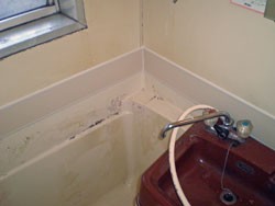 ◎ユニットバス(ほくさん)壁下部が腐食、ぼすぼすぶかぶかな状態。
