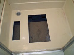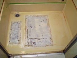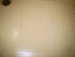 ユニットバス洗い場床がブカブカになり、亀裂発生+漏水あり。