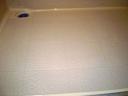 ◎浴室専用ゴム質フロアを樹脂にて密着敷き設。