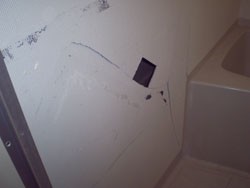 壁が破壊され陥没、壁が取れそうな位、ぶらぶらな状態。