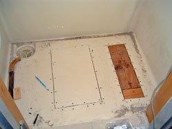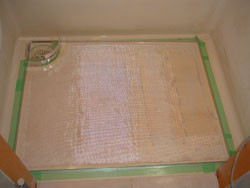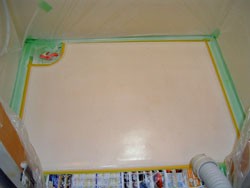 洗い場床表面にガラス繊維ロービングを敷き、専用樹脂で含浸(染み込ます事)