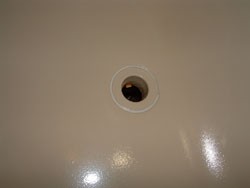 ◎緩んだ排水口金具を、浴槽本体と一体化し漏水原因の割れすきまを排除