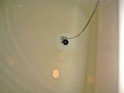 浴槽内部排水口(亀裂による緩み)より漏水を確認