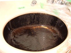 ◎ボール陶器の表面にカーボンファイバーを敷き詰め高強度を確保