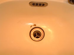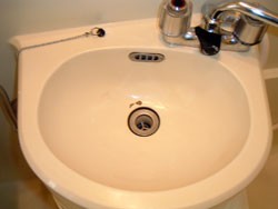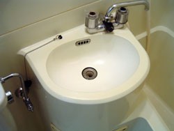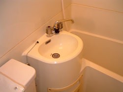 ◎トイレ・洗面・浴槽3点セットユニットバス。洗面ボール内部に穴、亀裂