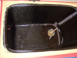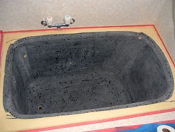 ◎ガラス繊維の約8倍強度のカーボンファイバーを使用。内部に新浴槽を成型。