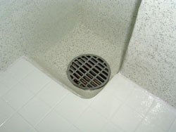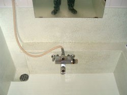 築約25年分譲マンション(金沢市・彦三)8階浴室。浴室洗い場でシャワーや掛け湯をすると漏水する。