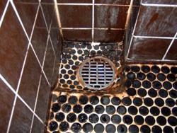 原因は、在来タイル浴室のため長年の使用で防水層が切れ漏水した様子。