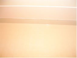 ◎壁パネル下部がサビ膨れ。床にアカサビによる染みが在り。