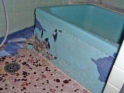 ◎マンション5階 埋め込みポリ浴槽のエプロンがボロボロの状態で気持ちが悪い。