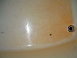 ◎ユニットバス浴槽底が無数のクラック、変色。