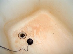 ◎浴槽底にへたな修理痕。キレツが入り漏水・素足に危険