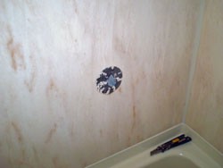 ◎アパートのユニットバスの壁に、携帯テレビ設置用のプレートを貼り付けていま